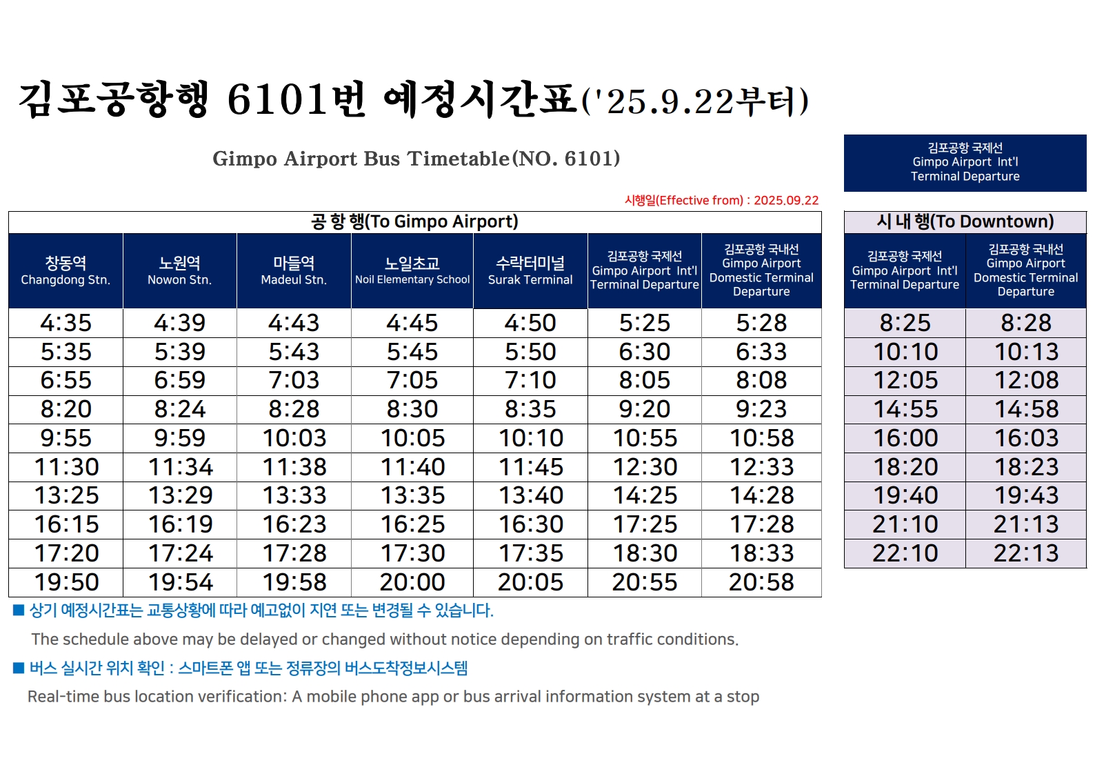 김포공항 6101번 시간표(2025.09.22일 부터)