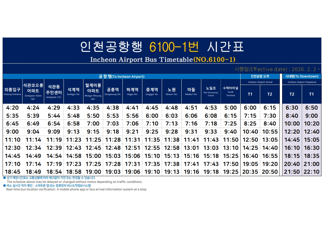 인천공항 6100-1 시간표(2.2일부 개통 예정)