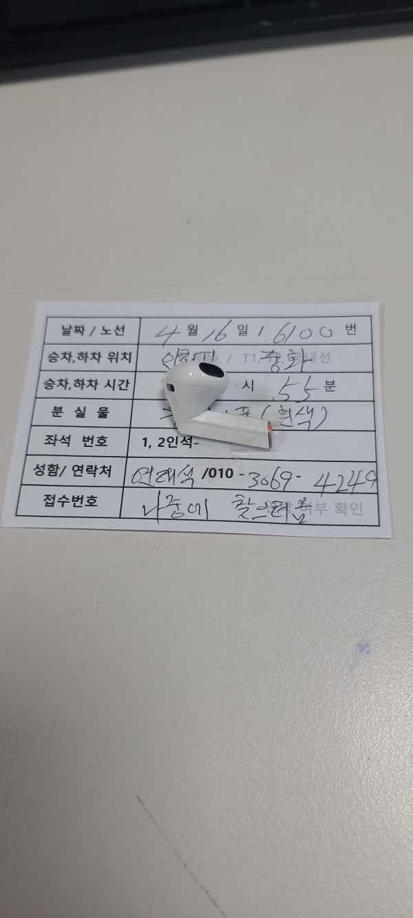 (※분실품 수령 방법: 분실물센터 방문 수령)