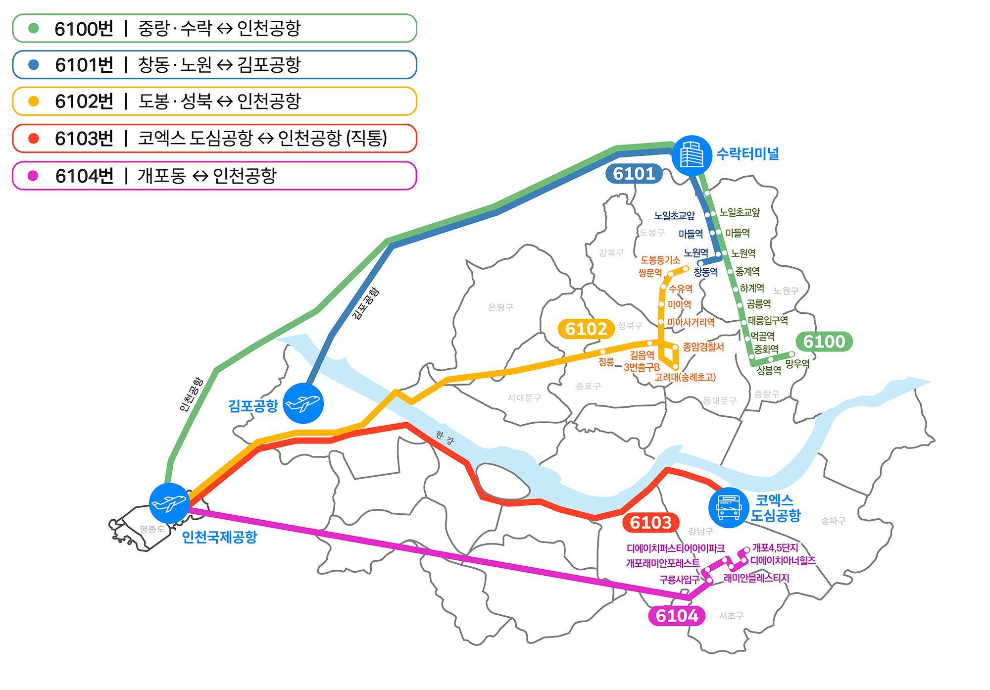 코엑스 도심공항 ↔ 인천공항(올림픽대로 경유)